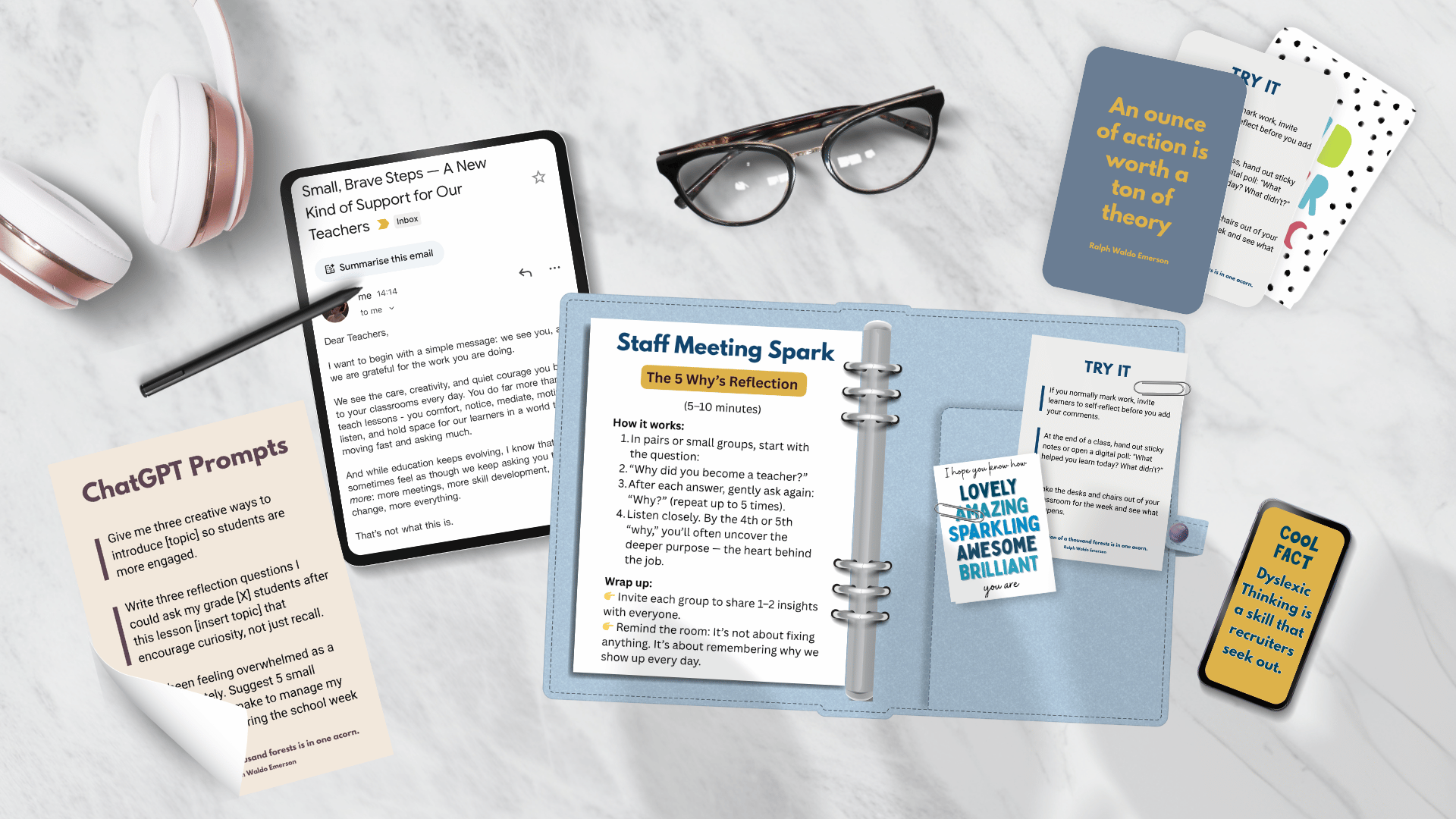 A curated selection of AI resources, ideas and prompts for your teachers to experiment with - saving time while learning new skills.